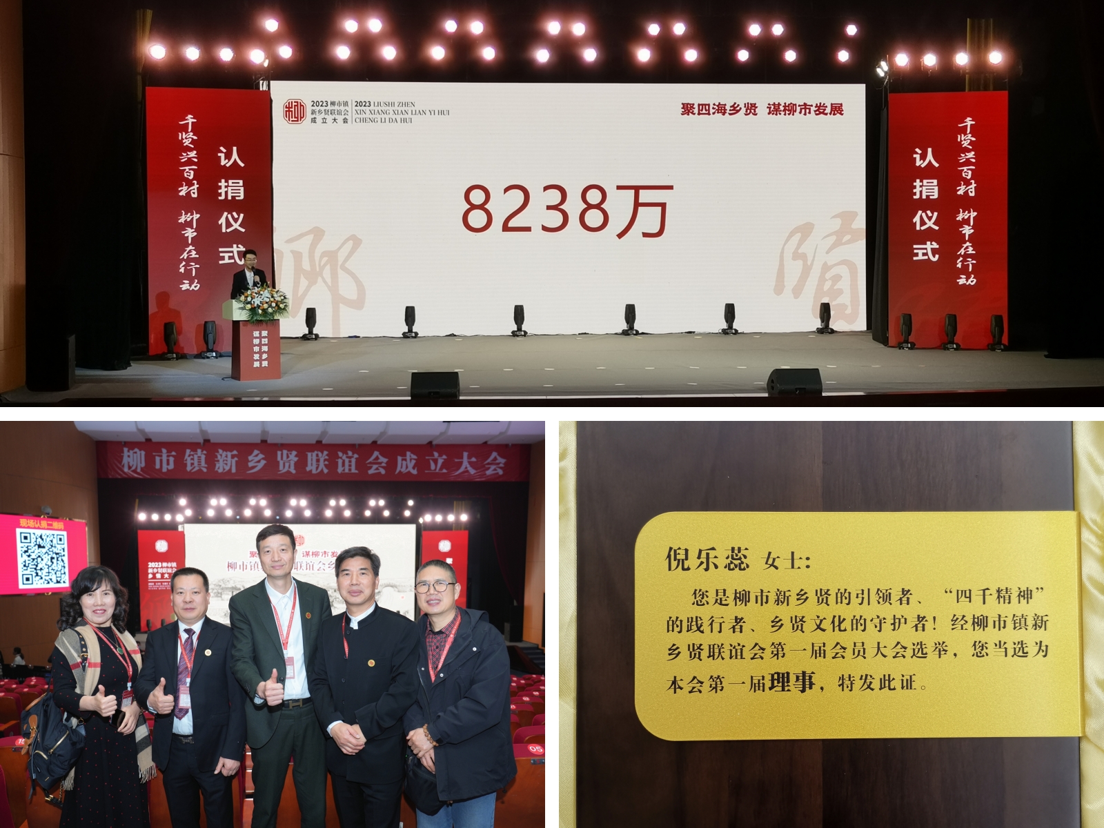 柳市有着中国电器之都、中国百强名镇、全国文明村镇等多张国字号金名片,且拥有全国五百强企业3家,上市企业6家,规上企业700多家,综合实力居全国千强镇第10位、浙江省第1位。柳市人有担当,有家乡情怀,大会启动的“千贤兴百村、柳市在行动”活动,与会人员纷纷认捐,助力家乡建设。welcome海洋之神制造有限公司踊跃出资,并当选本会第一届理事!